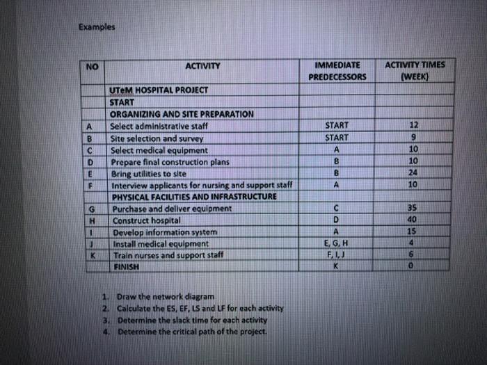 Solved Examples No Activity Immediate Predecessors Activity Chegg Com